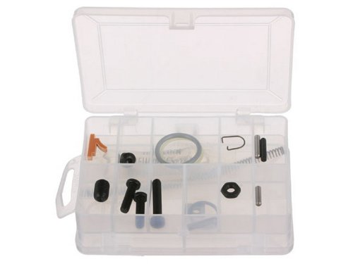 The Tippmann 98 Universal Parts kits include all of the following rebuild components:- Front Bolt Oring- Rear Bolt Oring- Buffer Oring- Ball Latch- Adapter Nut- Receiver Bolt long - Grip Nut- Dowel Pin- Pin- Valve Lock Screws- Front Sight Spring Receiver Dowel- Drive Spring- Velocity Screw- Receiver bolt short - Feed Elbow Dowel Pin- Marker Oil